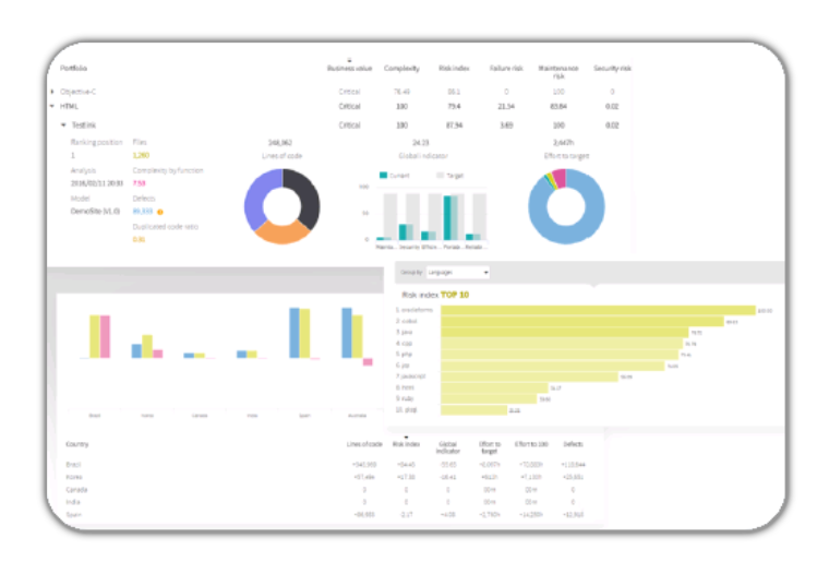 Kiuwan Code Analysis provides a comprehensive overview of all security vulnerabilities identified in the source code. It uses industry standard criteria to assess the threat level inherent in identified vulnerabilities. You can create action plans to fix weak spots by either estimating the amount of developer effort needed or defining your target assessment. You determine how you want to evaluate application risks. As a multi-language solution, Kiuwan Code Analysis covers most programming languages which means that every single application can be tested.