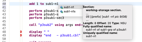 In a first step, the P3/COBOL Editor indexes the entire source code to provide a high degree of comfort when developing or maintaining existing or new COBOL applications.