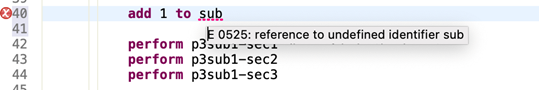 Syntax Check saves time. It avoids unnecessary compilation, and in particular transfer to the host system. The P3/COBOL Editor supports COBOL dialects such as COBOL85, COBOL 2000 and many more.