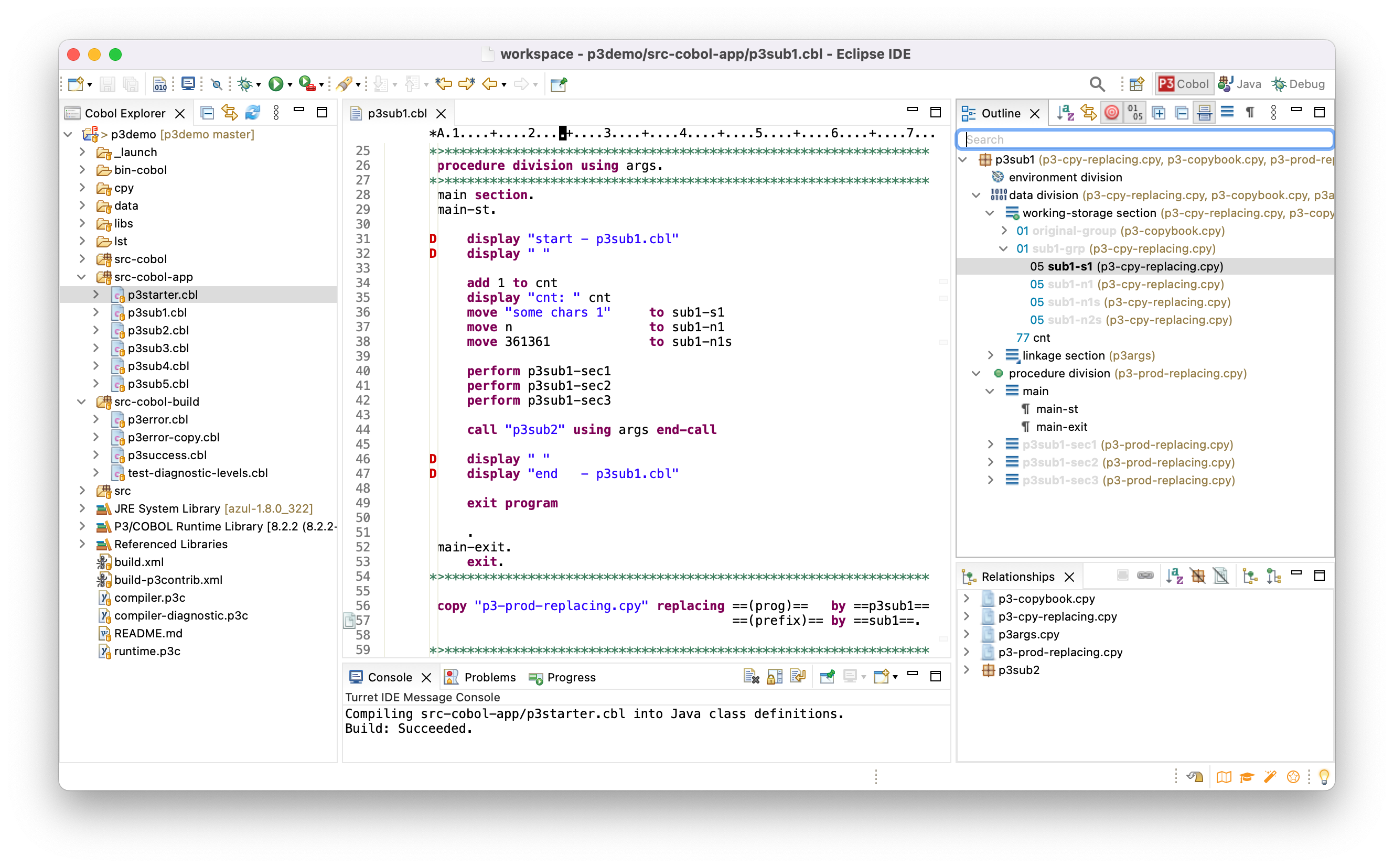 The P3/COBOL Editor is an Eclipse plugin that offers developers a comfortable and modern development environment to maintain and develop simple and complex BS2000 mainframe applications.