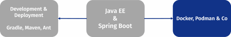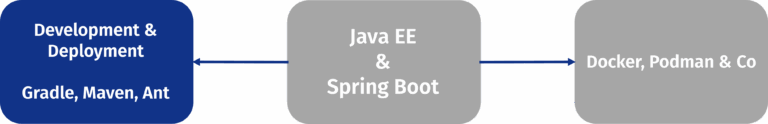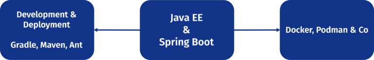 Today, development of modern applications following a RestAPI or MVC principle uses Java EE or Spring Boot. While that leads to changes in interfaces compared to legacy architecture, it leaves the business core untouched.