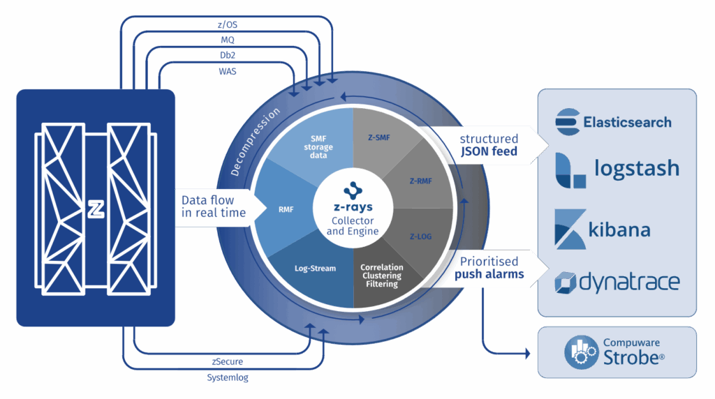 Z-RAYS sends data in nearly real-time to multiple destinations in different formats for different consumers and allows IT operations to analyse and manage operating systems, databases and other mainframe environments.